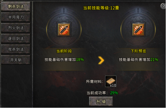 保护机制:技能升至5级、10级、15级时,升级失败不会掉级;等级越高,消耗技能书越多,成功率越低。